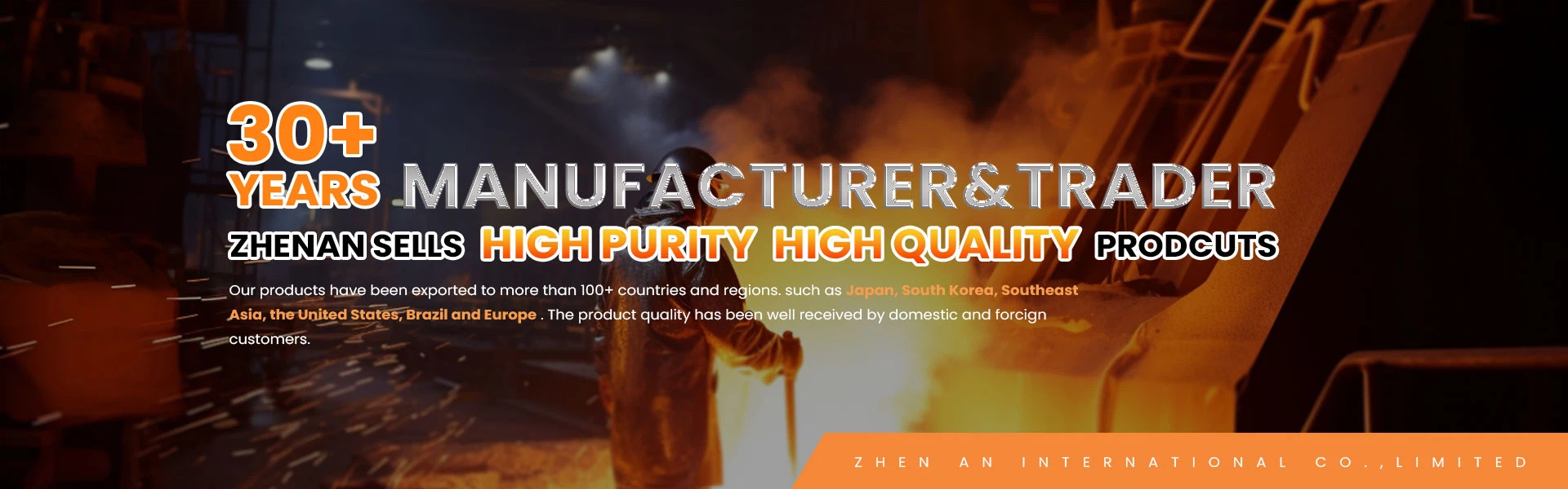 ЗхенАн је корпорација која интегрише производњу, прераду, продају, увоз и извоз. Са тридесетогодишњим искуством, ми смо врхунски произвођач и добављач металуршких сировина, посвећени понуди врхунских феролегура, феро силицијума, металног силицијума, силицијум металног праха, ферованадијума, љуспица ванадијум пентоксида, електролитичких манганских пахуљица и других.